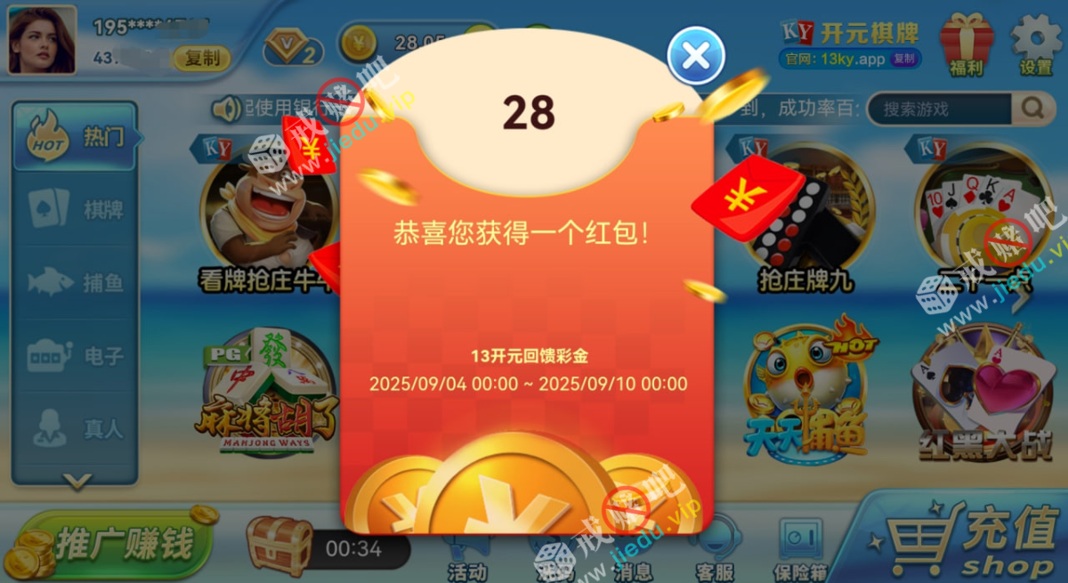 充值玩过的和最近爱玩的上号看看,送了多少回馈彩金,我是 28 块的。