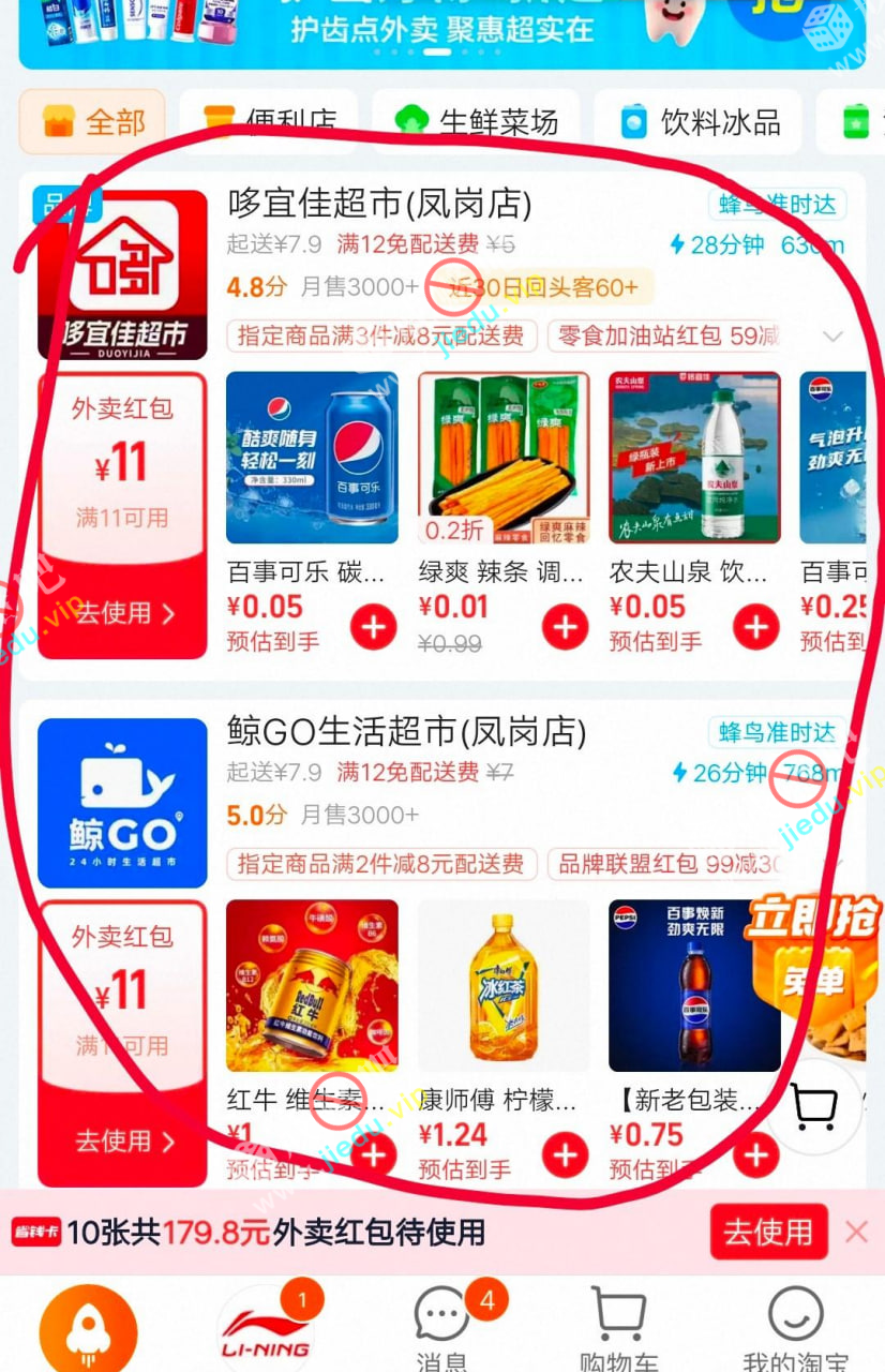 自己淘宝app打开看一下秒送超市有没有几块钱起送,然后看一下有没有商超果蔬红包,应该部分人有两张,一张11,一张12,然后达到减配送费的,花两三块就能白嫖,有钱的无视,挂壁兄弟们看一下!