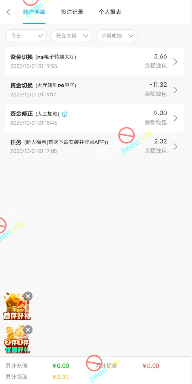 我是被网站劫持进去的,注册好了找客服申请9彩金,要截图自己截图劫持页面,新人任务那里还有2彩金,10块才能游戏,余额少于10退出再进就玩不了 限制pg电子 。