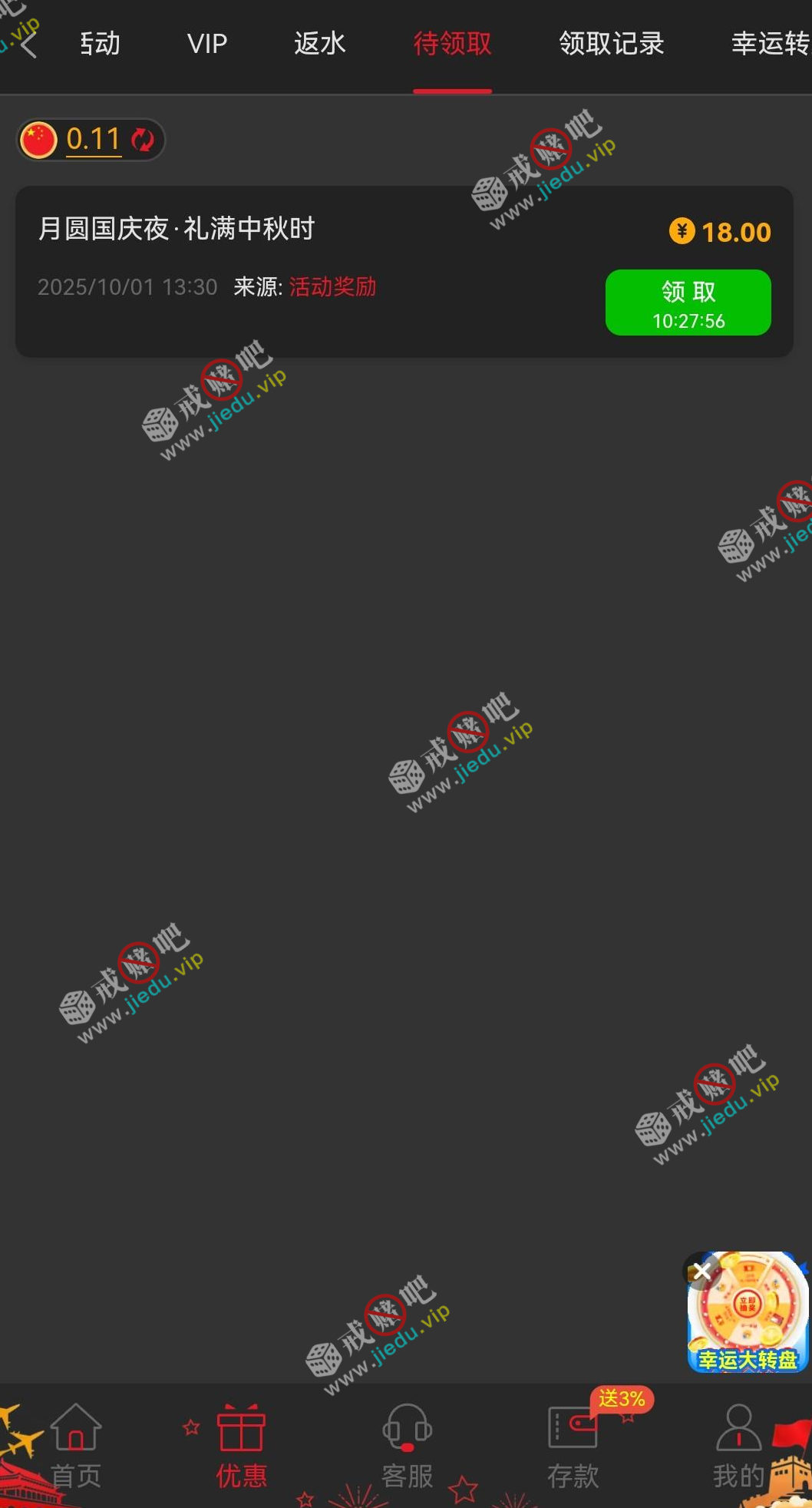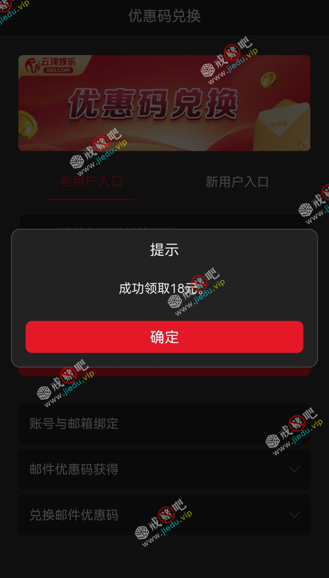 玩过云顶娱乐的老哥可以看看邮箱有没有优惠码,有的话去优惠码中心入口领取,我就充值过玩过100,领了18。