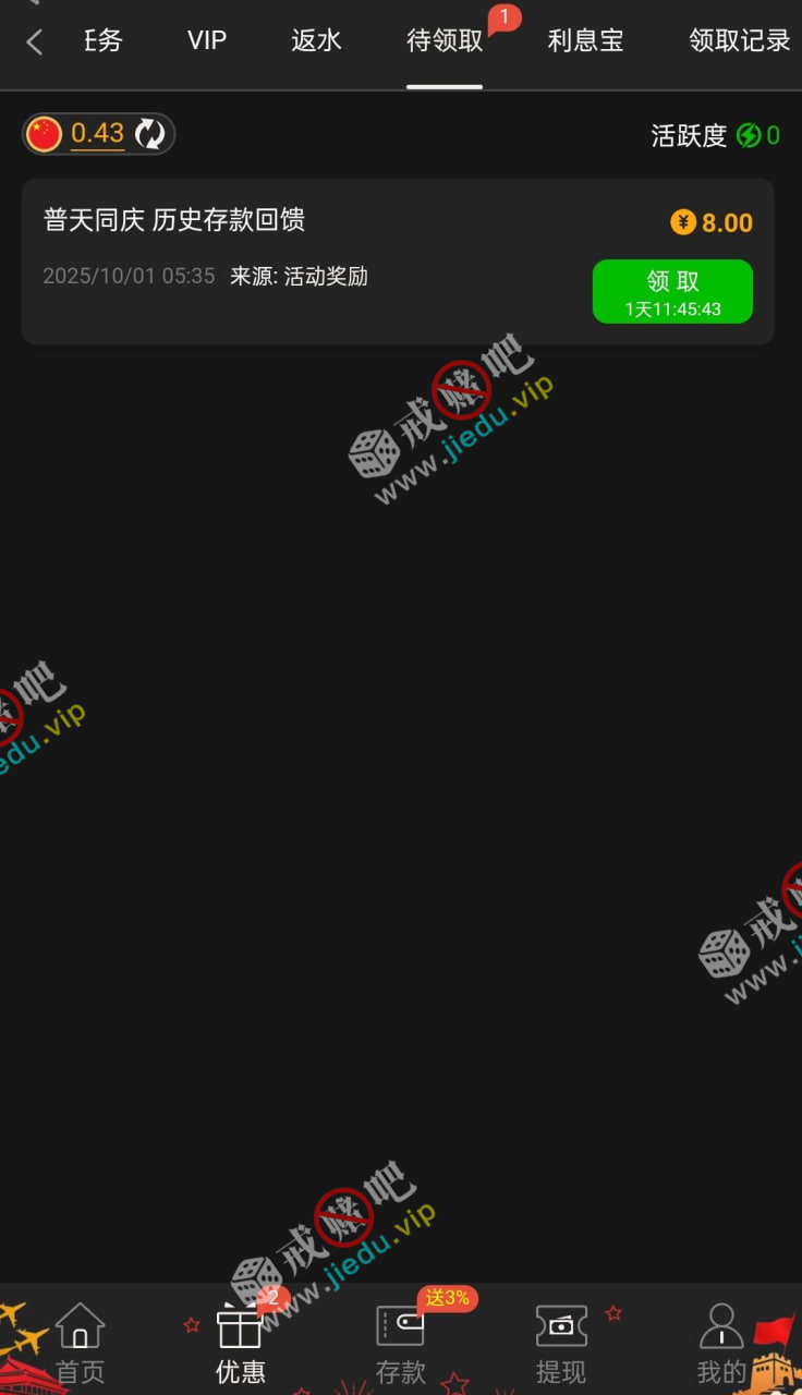 这几天忙,没时间登录去,今天上去看就待领取里看见还没有逾期的回馈彩金,可以去看看。