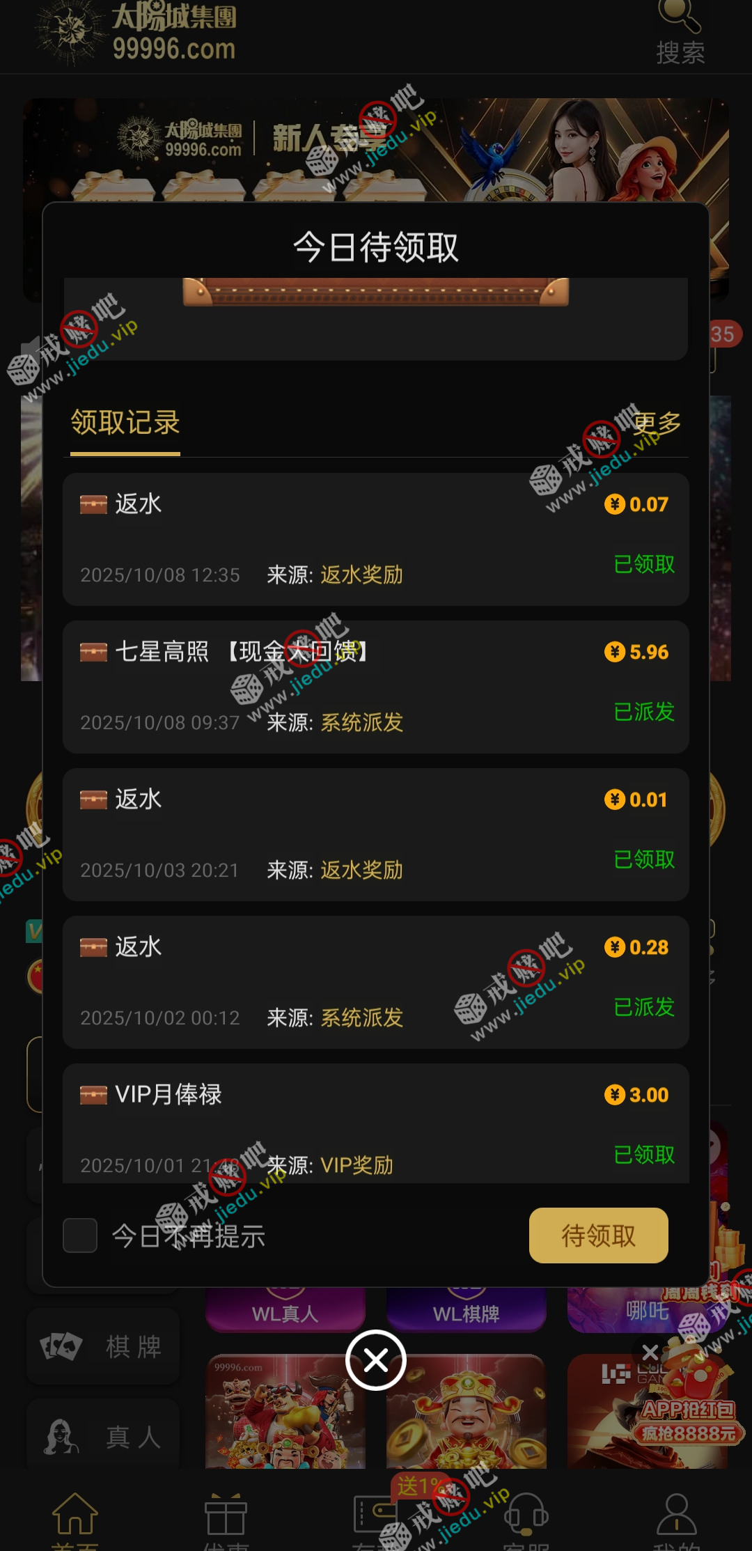 前面的国庆登录彩金没领的现在还可以上去领一下,可以领,不要中出我。