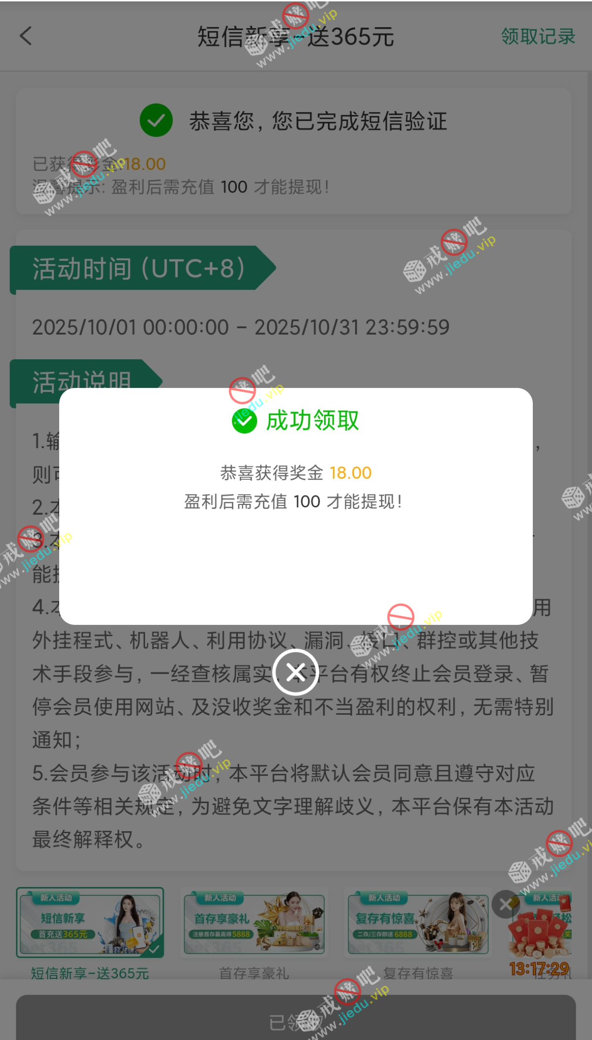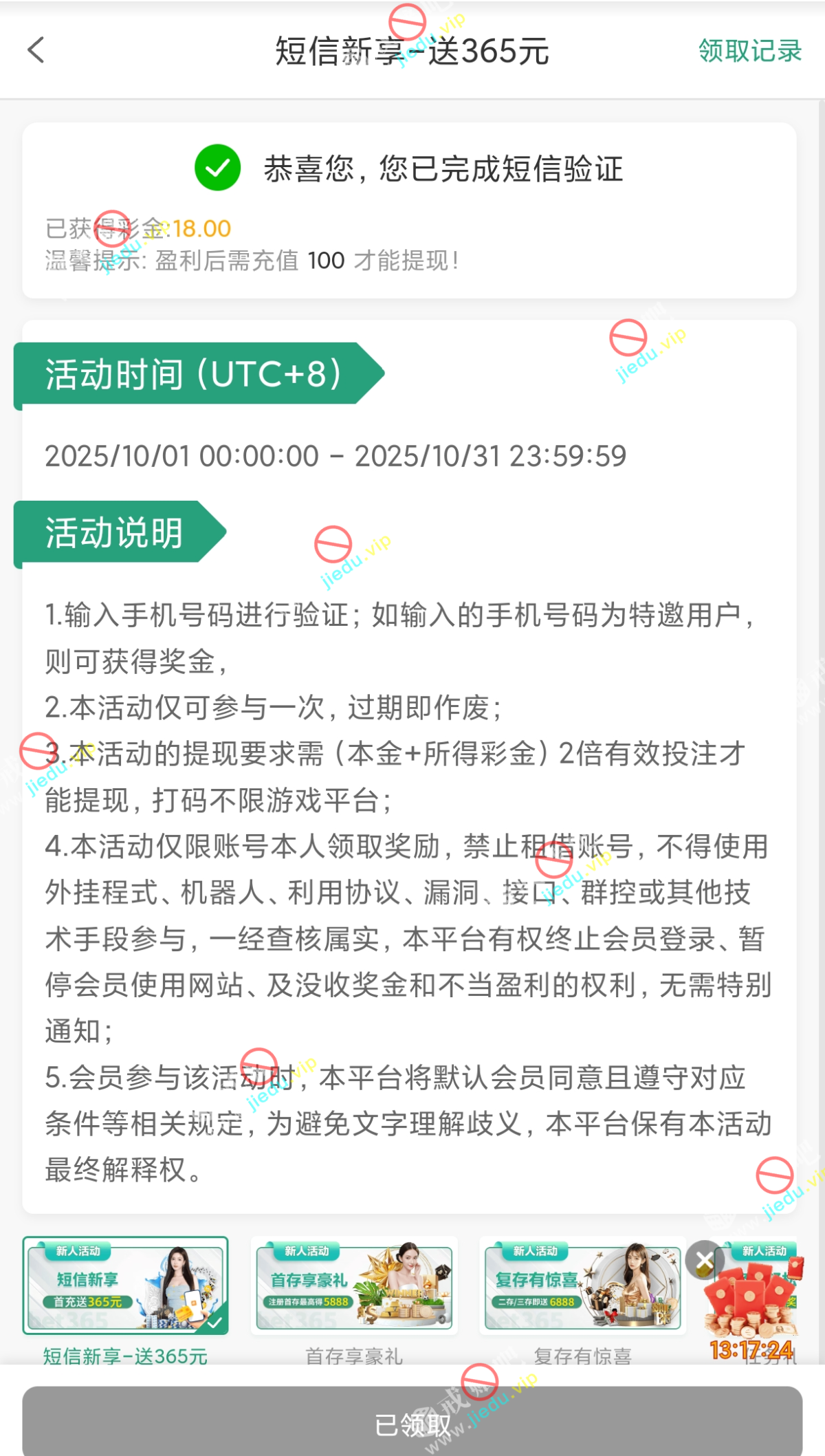 到账情况: 白嫖即可(勿充值)