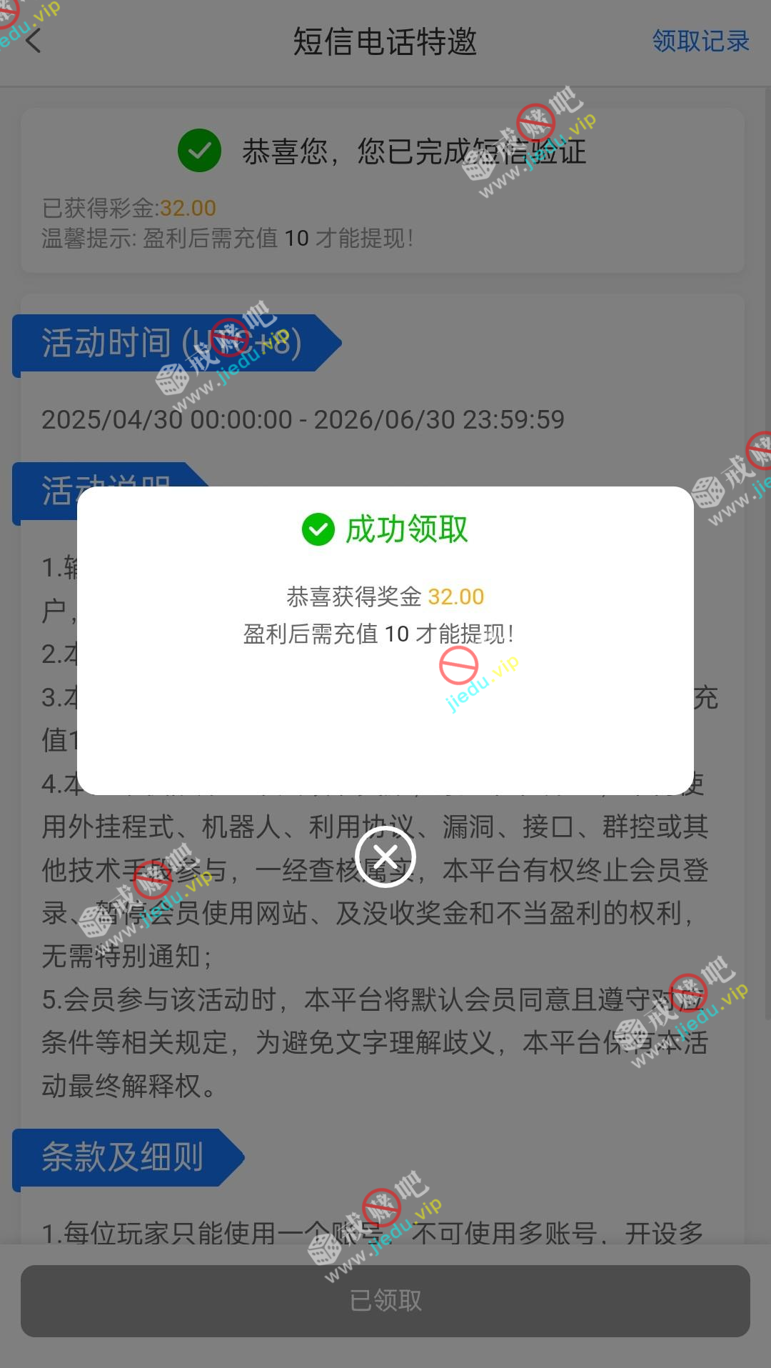 到账情况: 白嫖即可(勿充值)