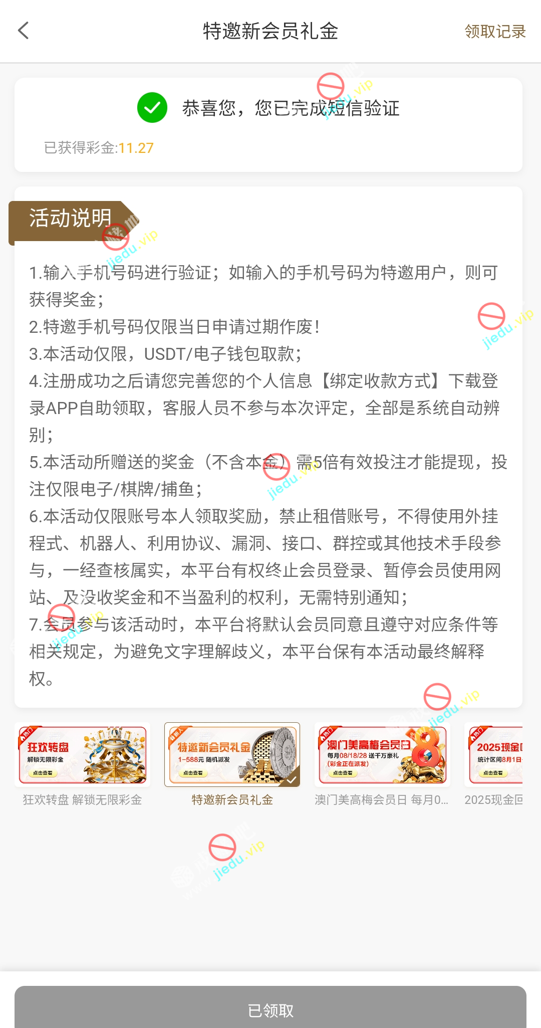 到账情况: 白嫖即可(勿充值)