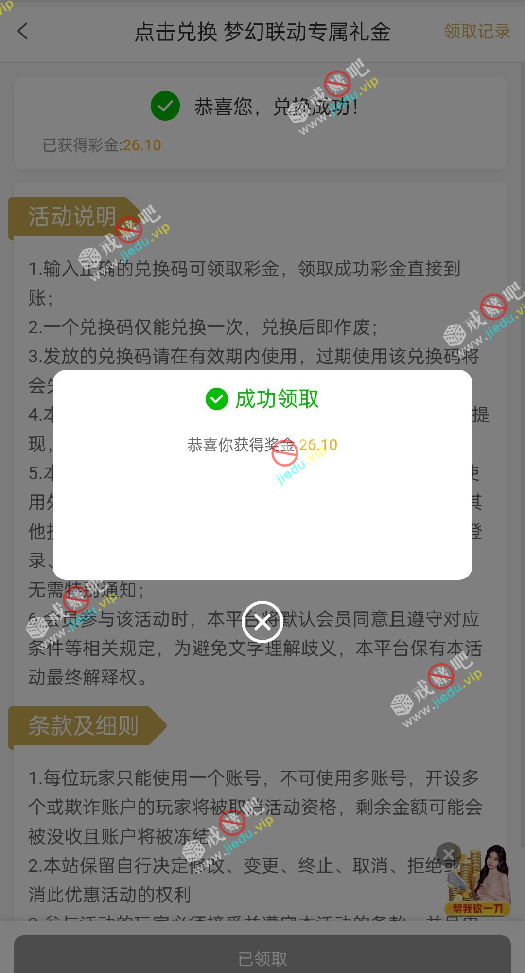 到账情况: 白嫖即可(勿充值)