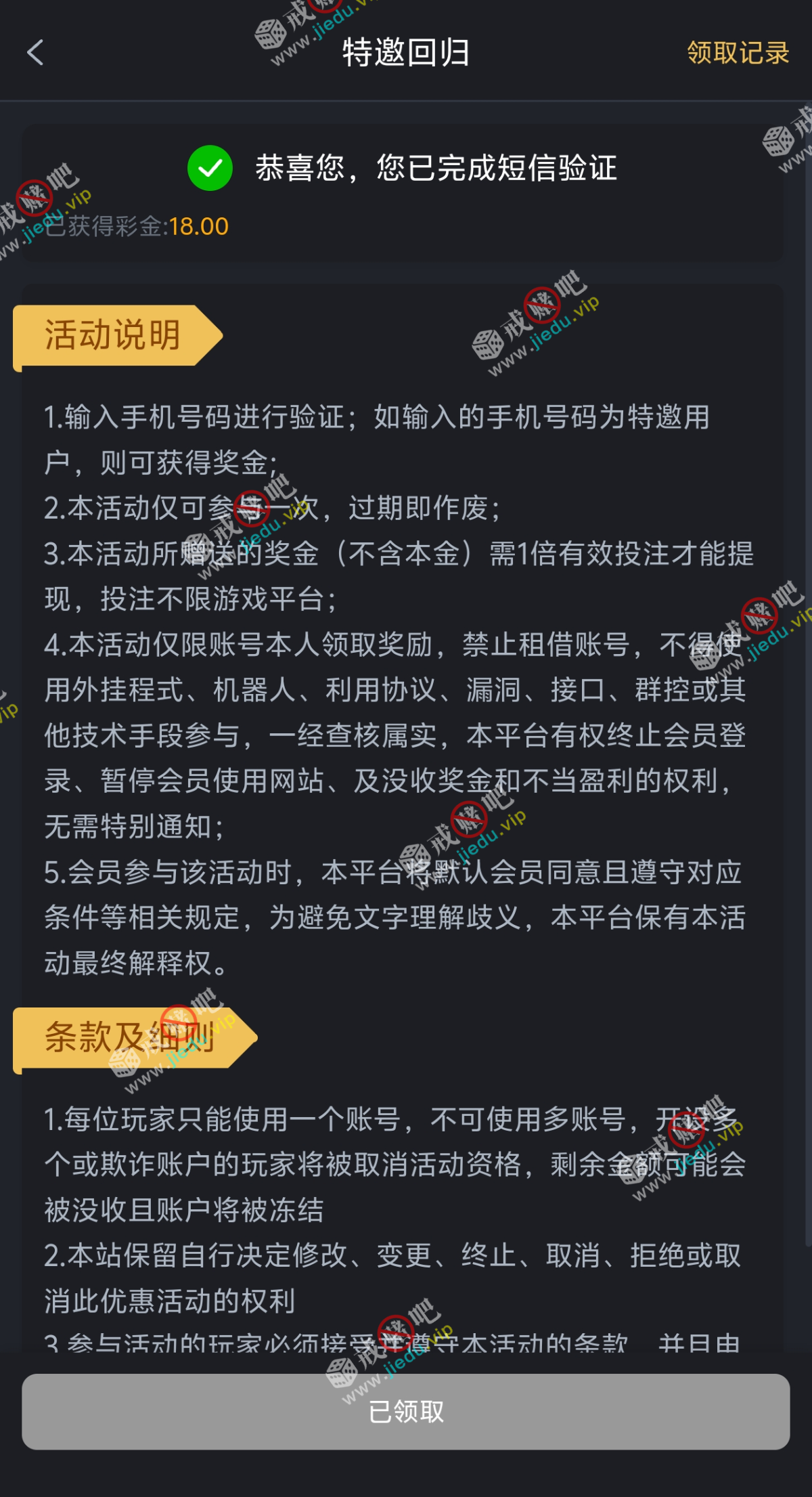 到账情况: 白嫖即可(勿充值)