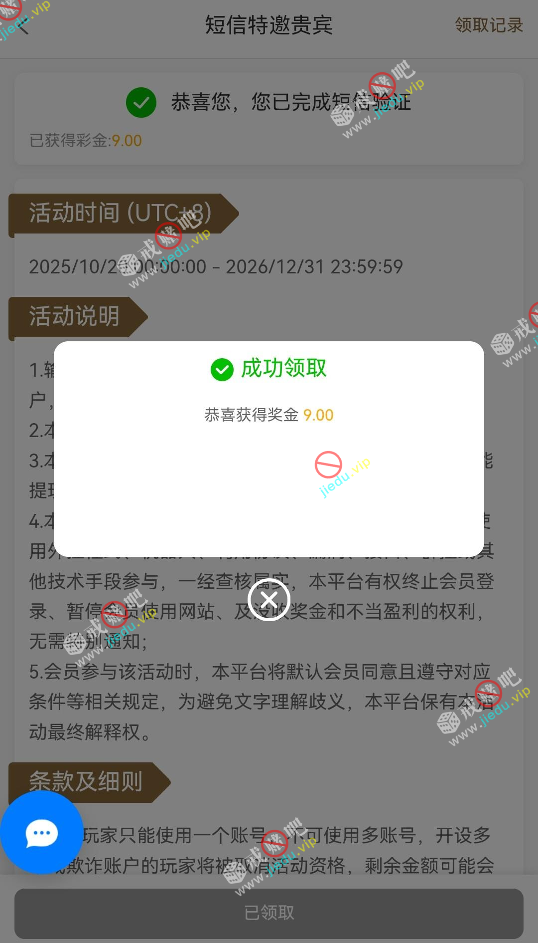 现在送9验证就能领。注册直接去活动输入手机号能发码再去绑定手机号!