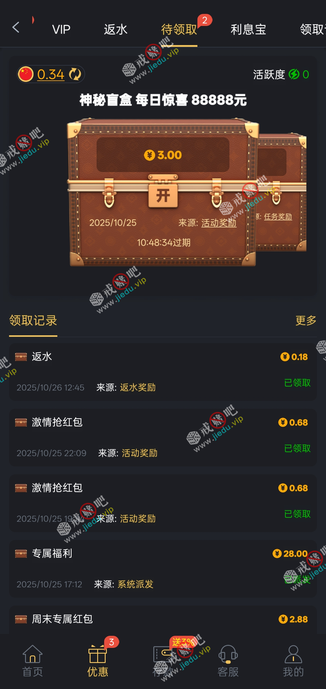到账情况: 白嫖即可(勿充值)
