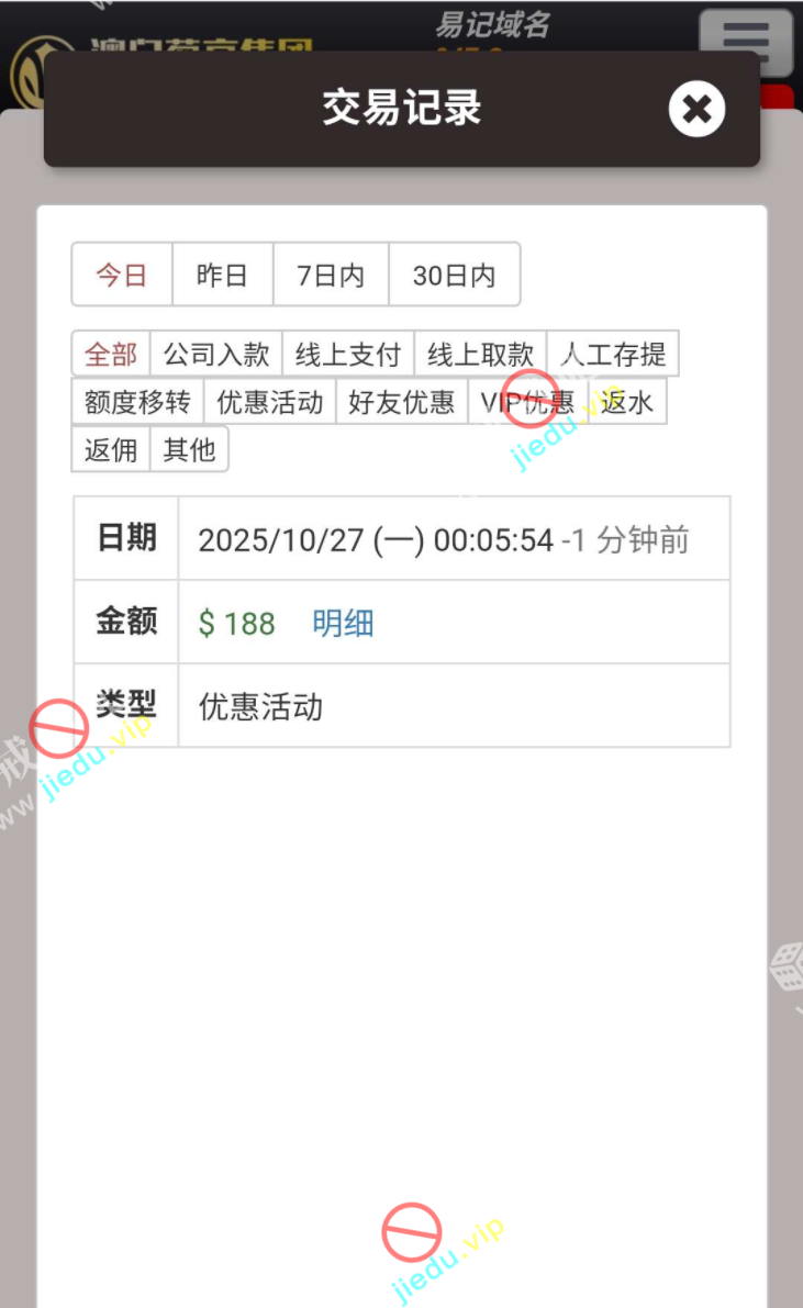 我充值过的,注册了 6 个月充过 200 多,今天打电话给我上号去领取。回访彩金 38,上去了就有 188,有充过的兄弟们去看看。