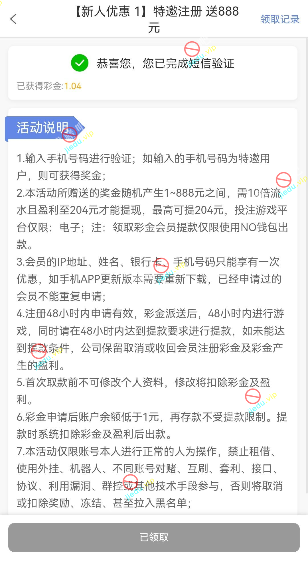 到账情况: 白嫖即可(勿充值)