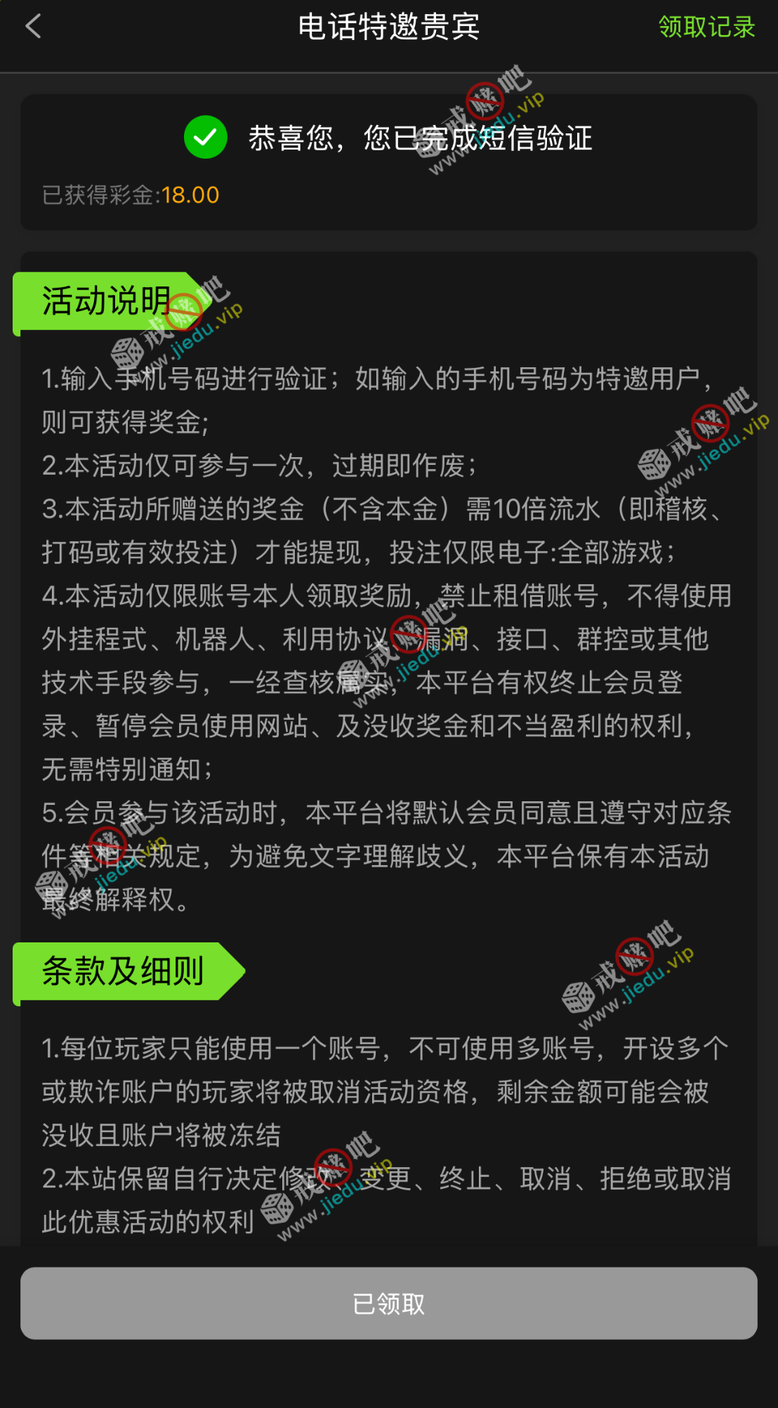 我之前注册领取过,今天打电话登录上去还可以领取,提现已经到帐了