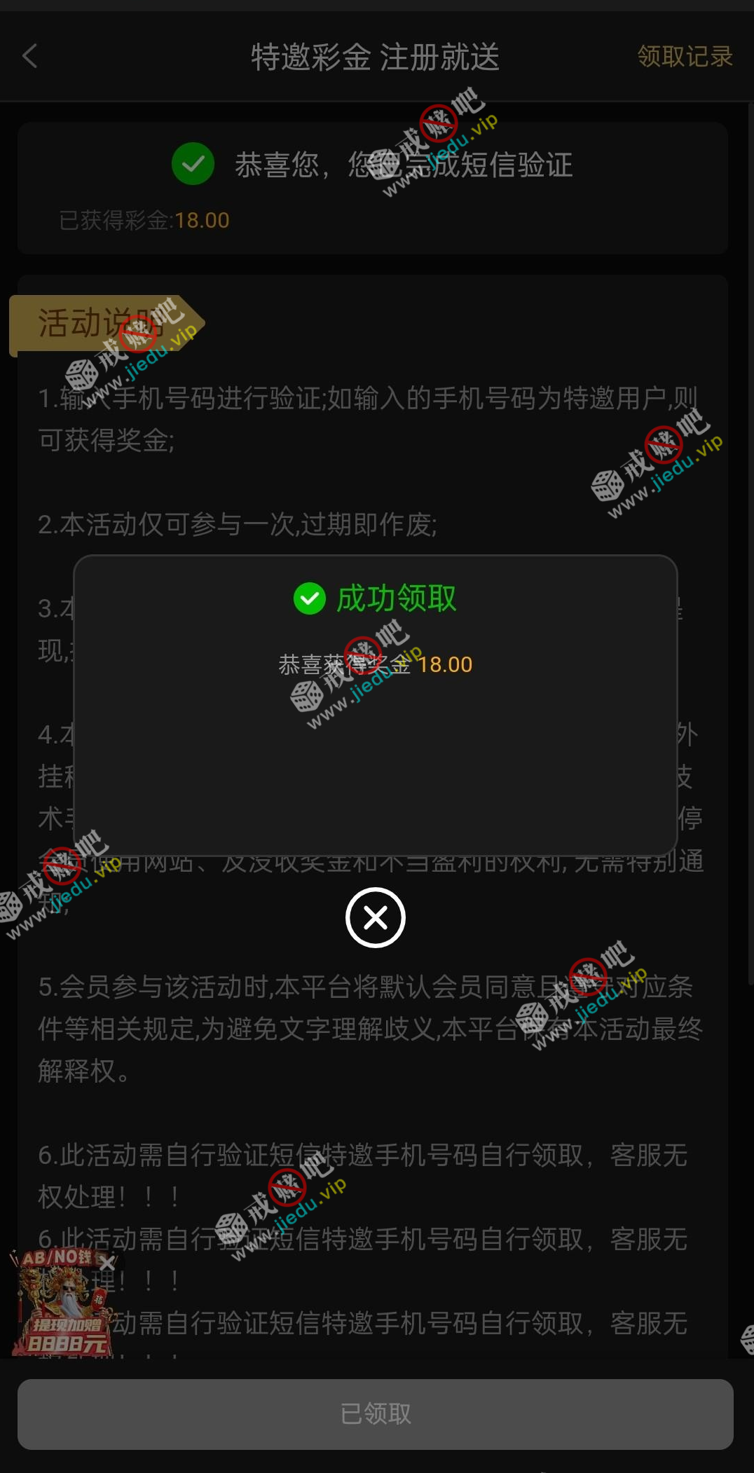 短信特邀,注册就有18,我没打出来。