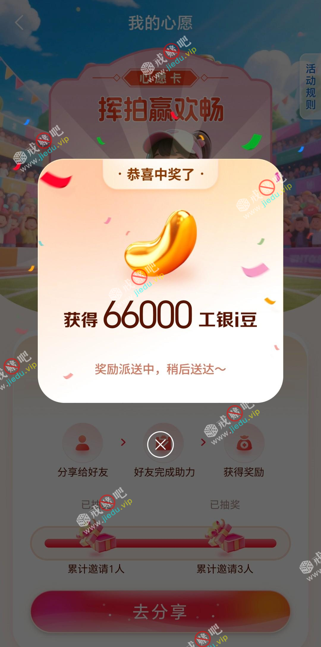 然后我图里那个66000豆是需要三个人助力的,不是必中。但是有低保5000豆。最高66000。也就是60块。