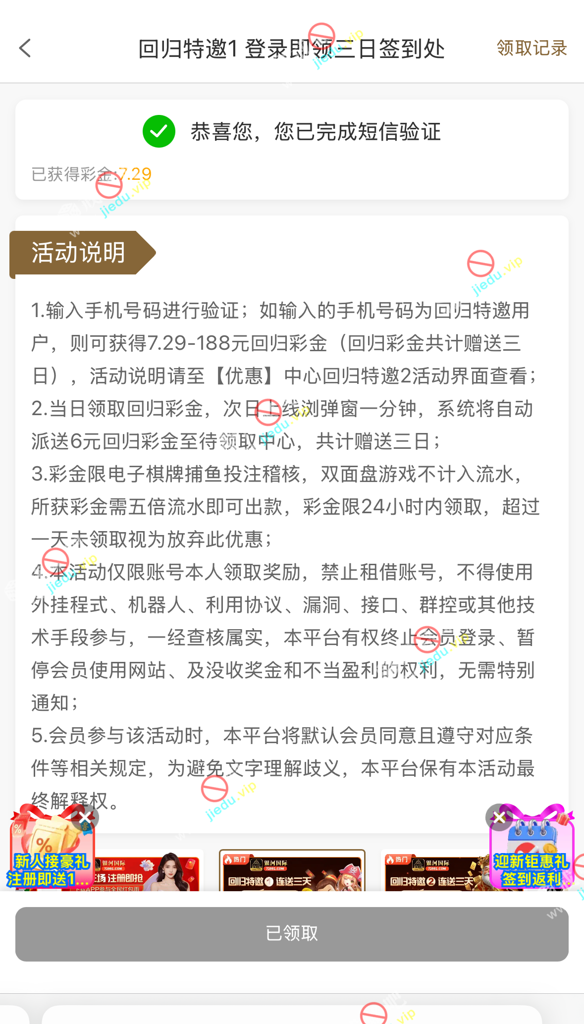 到账情况: 白嫖即可(勿充值)