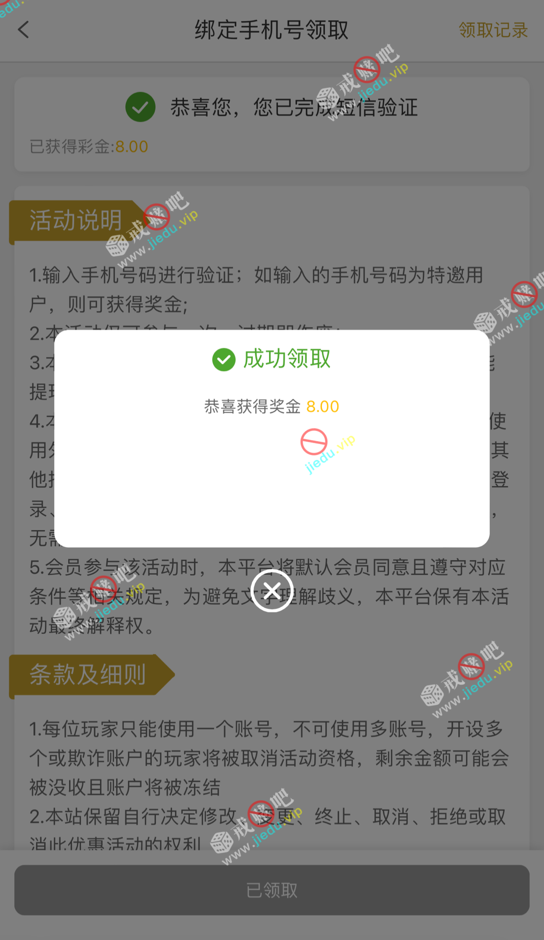 到账情况: 白嫖即可(勿充值)