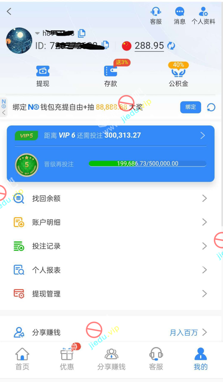 登录就有的,我都奇怪了,昨天都是余额是 零蛋 的,今天就变成 288.