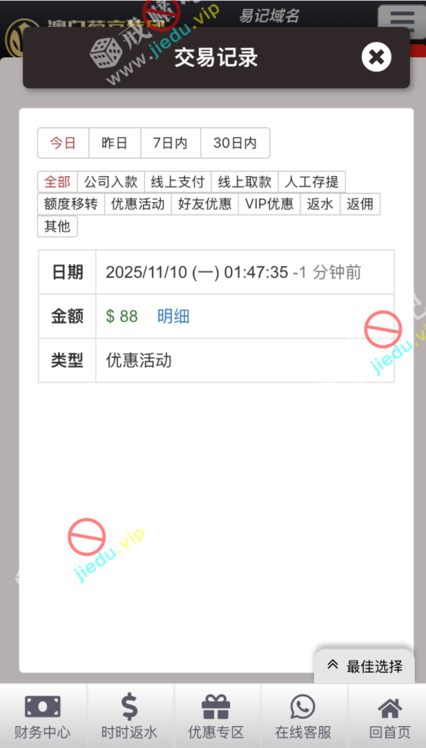 电话回访彩金,接到电话就上去看了就见了,没有找过客服。