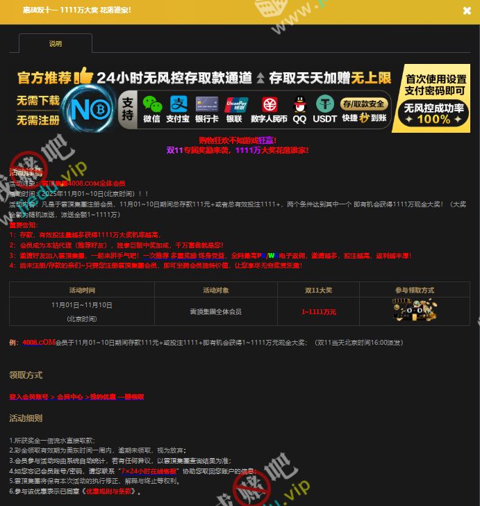 有账号的登陆送双十一彩金,我自己玩了七八年的台子,提现基本都是秒到。