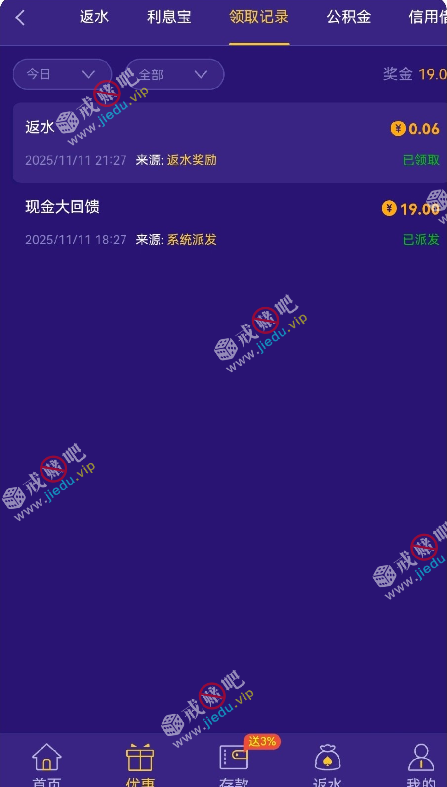 有号的可以去看下,昨天双十一领到了现金大回馈 19 块。