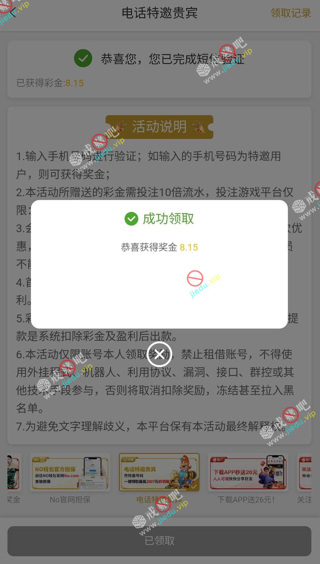 到账情况: 白嫖即可(勿充值)