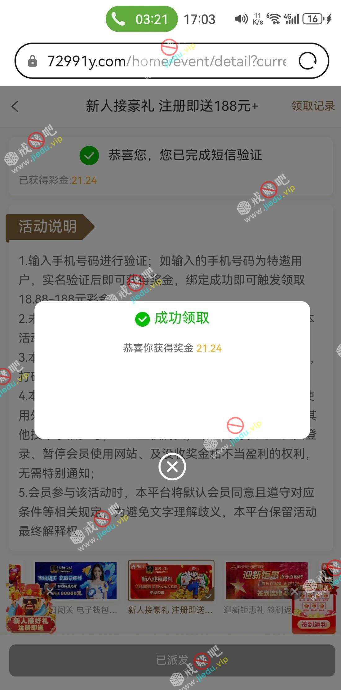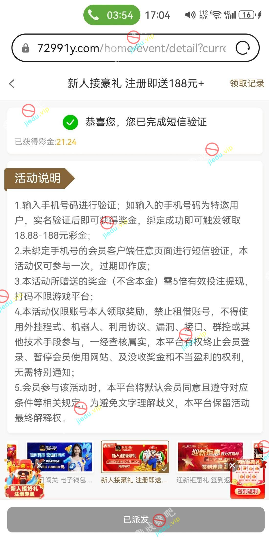 到账情况: 白嫖即可(勿充值)