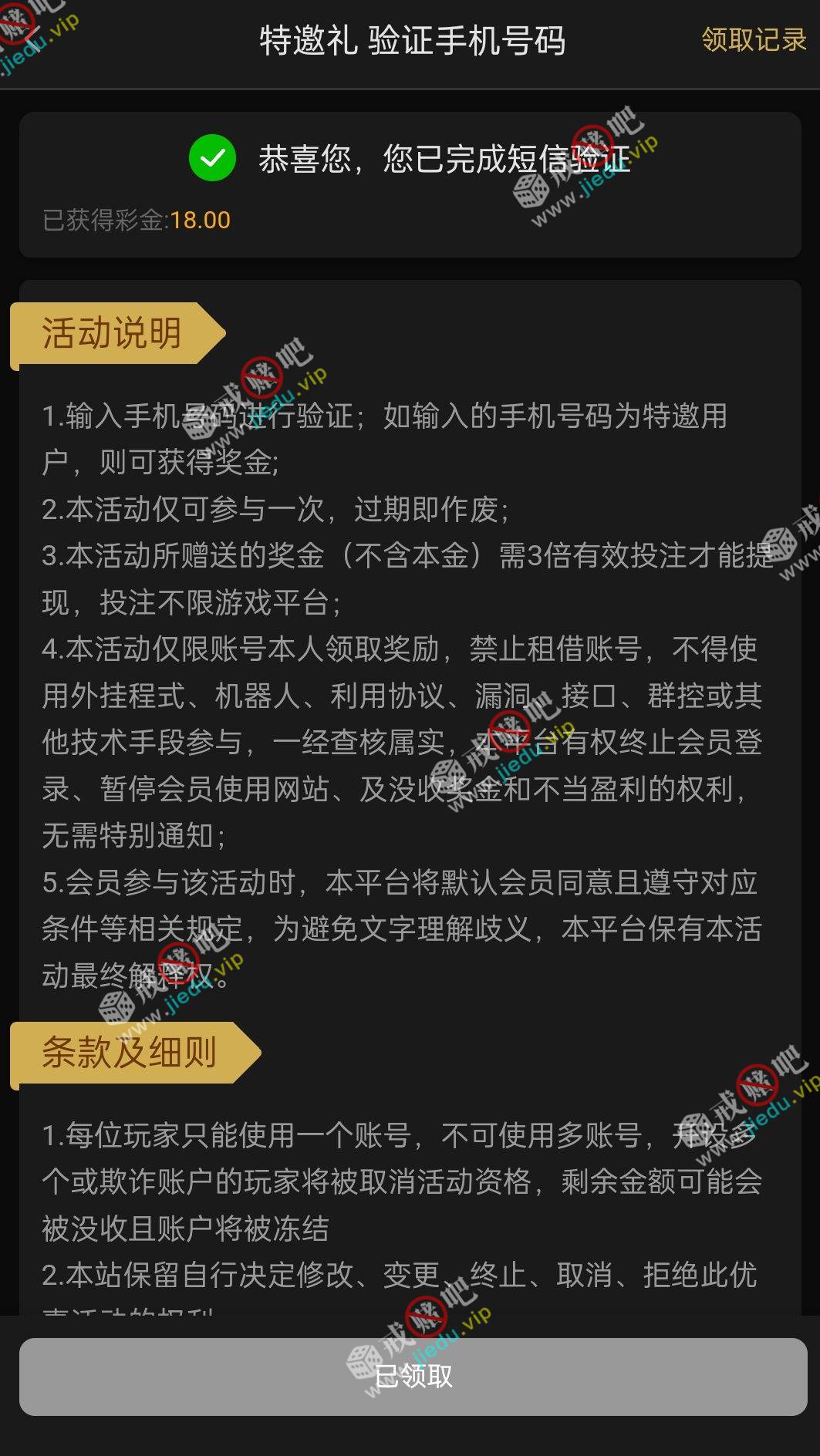 到账情况: 白嫖即可(勿充值)