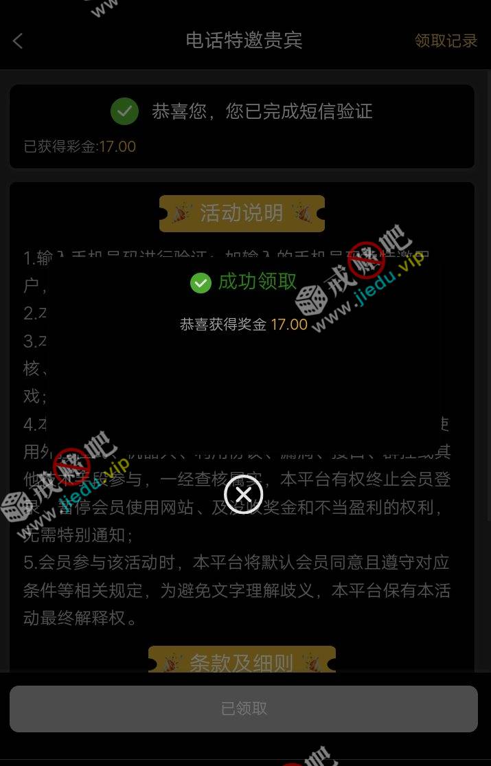 碰瓷电话彩金,刚碰到的,不建议充值,没有就撒。