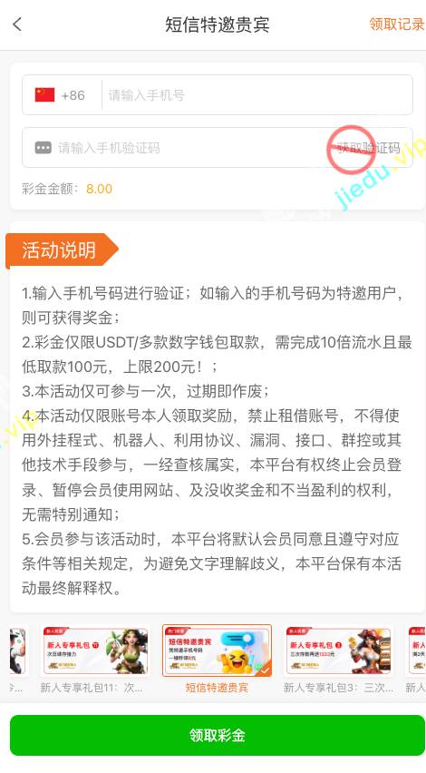 下载APP后输入手机号碰碰,特邀就会领到,不是特邀就别骂我,是自助彩金。