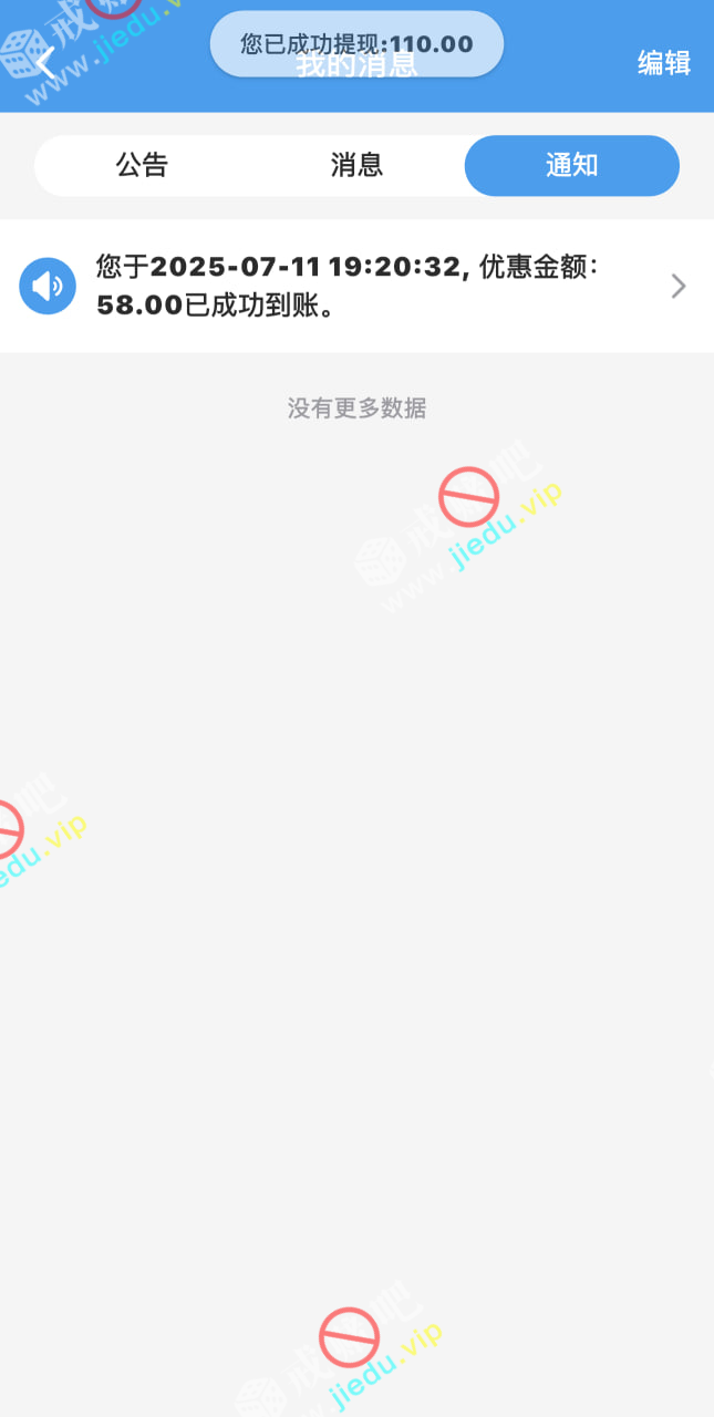刚打电话送了 58 的神秘彩金,漏接的可以去碰瓷,不知道有没有,我已提 110 成功到账。