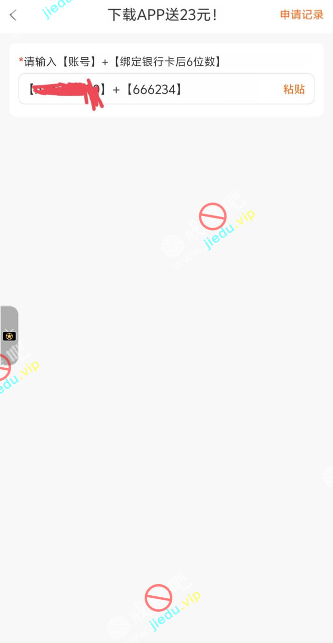 注册绑卡下载APP申请格式看图账号+银行卡后6位我没打出来,自己碰碰吧。