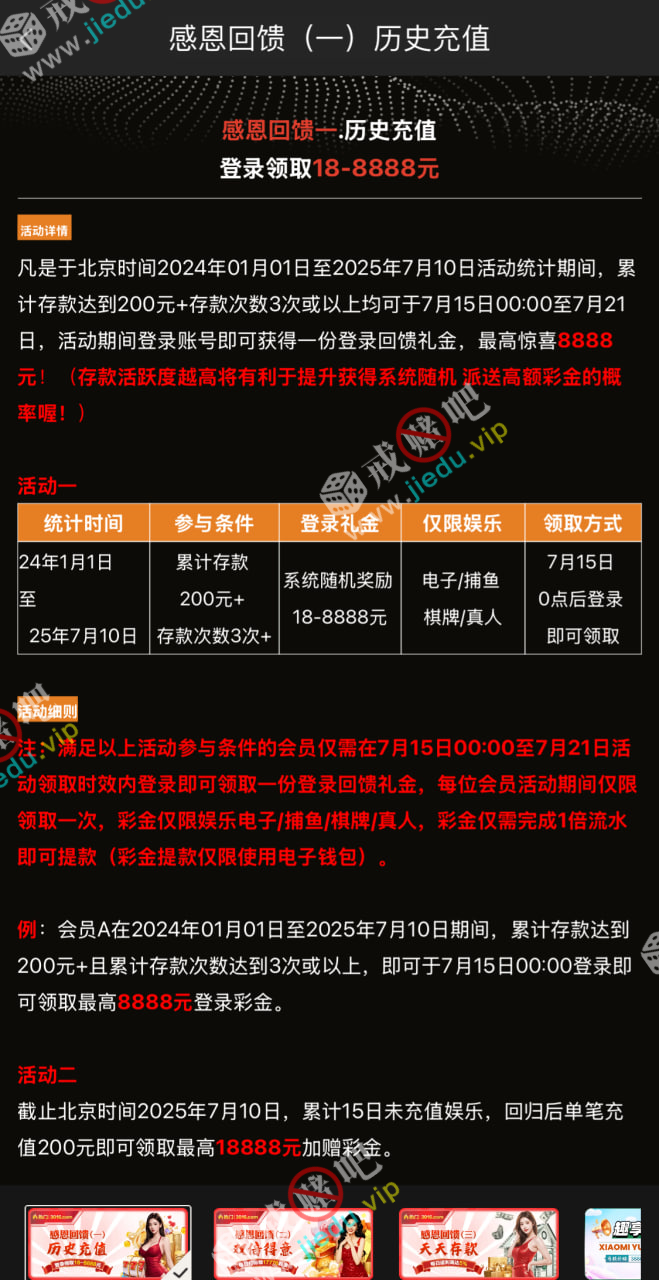 【银河3016】—✅—历史充值回馈