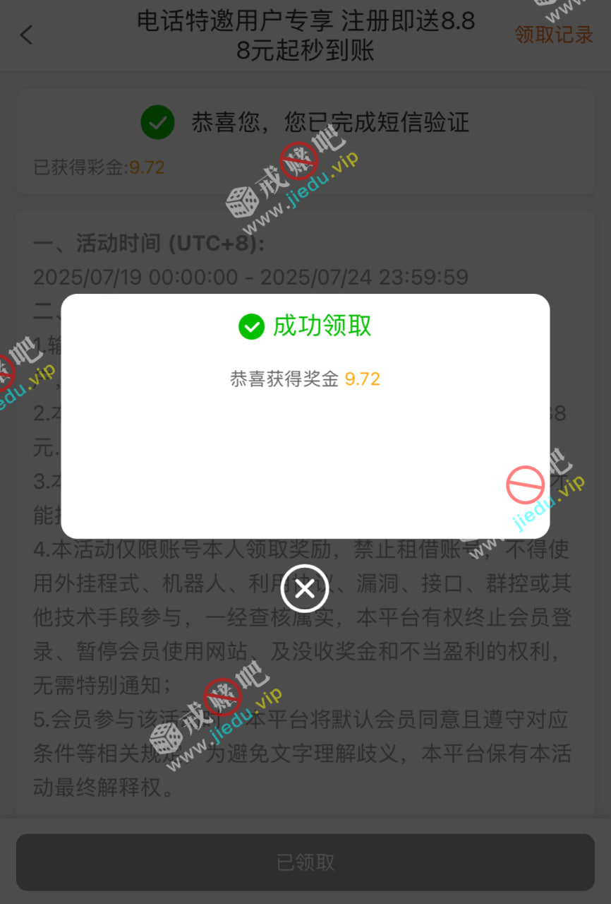 没接到电话的兄弟们,输入手机号试试,我领了,可惜没打出来。