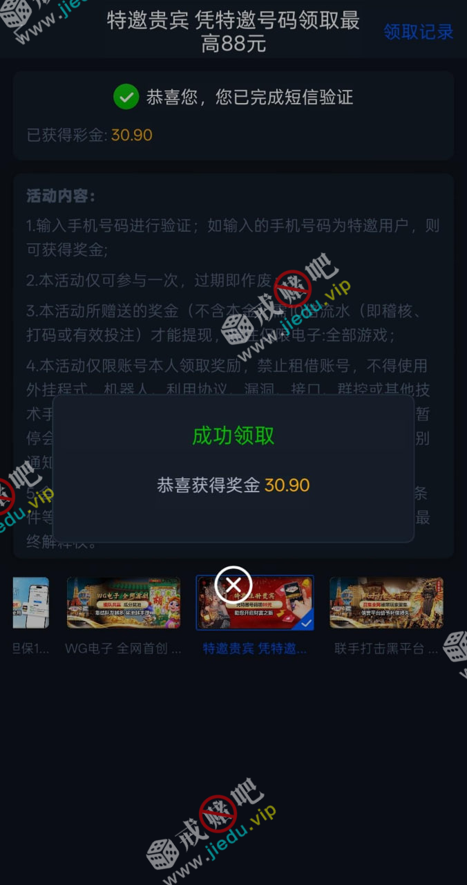 刚接到电话自助送了30。试了一下另外一个手机号也是特邀,有号就可以去碰瓷。