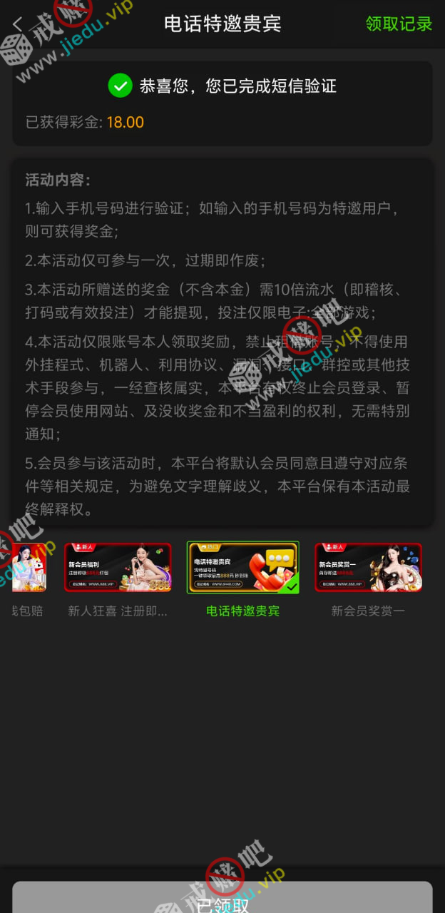 哥们我没接到电话以前也碰过了但是没碰到,今天再次去碰了就领到了 18,像我的哥们直接输入手机号试试看,有就是特邀,没有就没有哈。