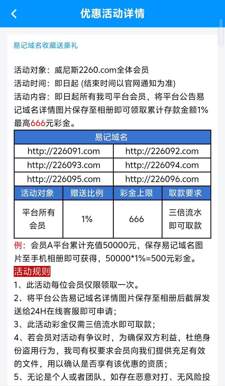 威尼斯人老用户历史存款可领取总存款的百分之一,三倍流水。我历史存款两万三.领了230,联系客服发下面的活动图片给他申请就可以了。白嫖即可,白嫖七百已到账。