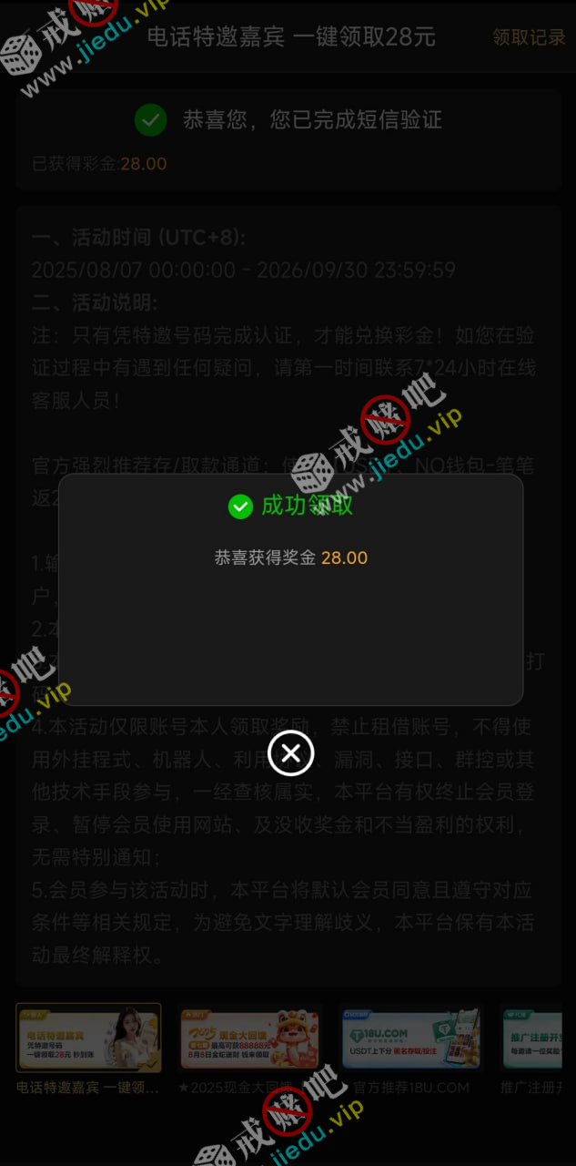 到账情况: 白嫖即可(勿充值)