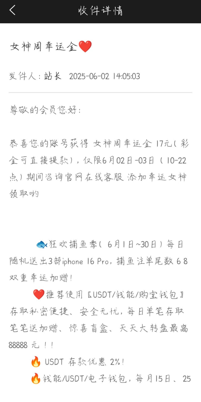 兄弟们看看站内信有没有周幸运金,可以找女神申请