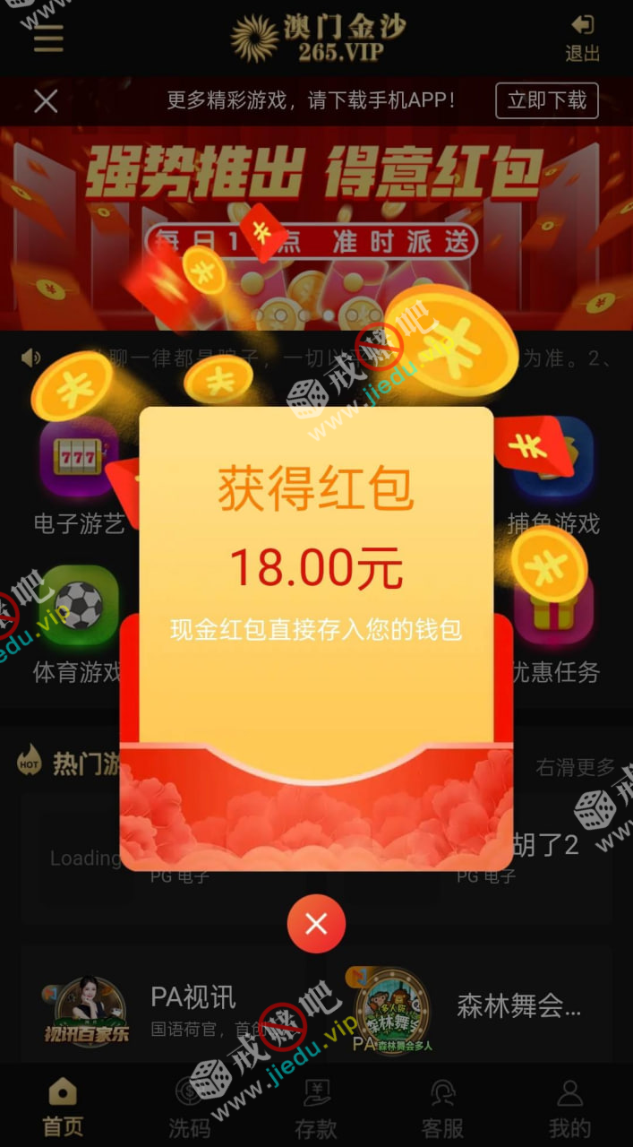 接到电话,金沙送18回归彩金!有漏接电话的可以去看看,我一毛都没充过。