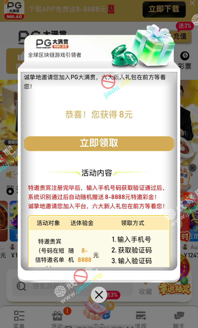 手机号注册自动弹出来验证彩金 验证码领取就行了。