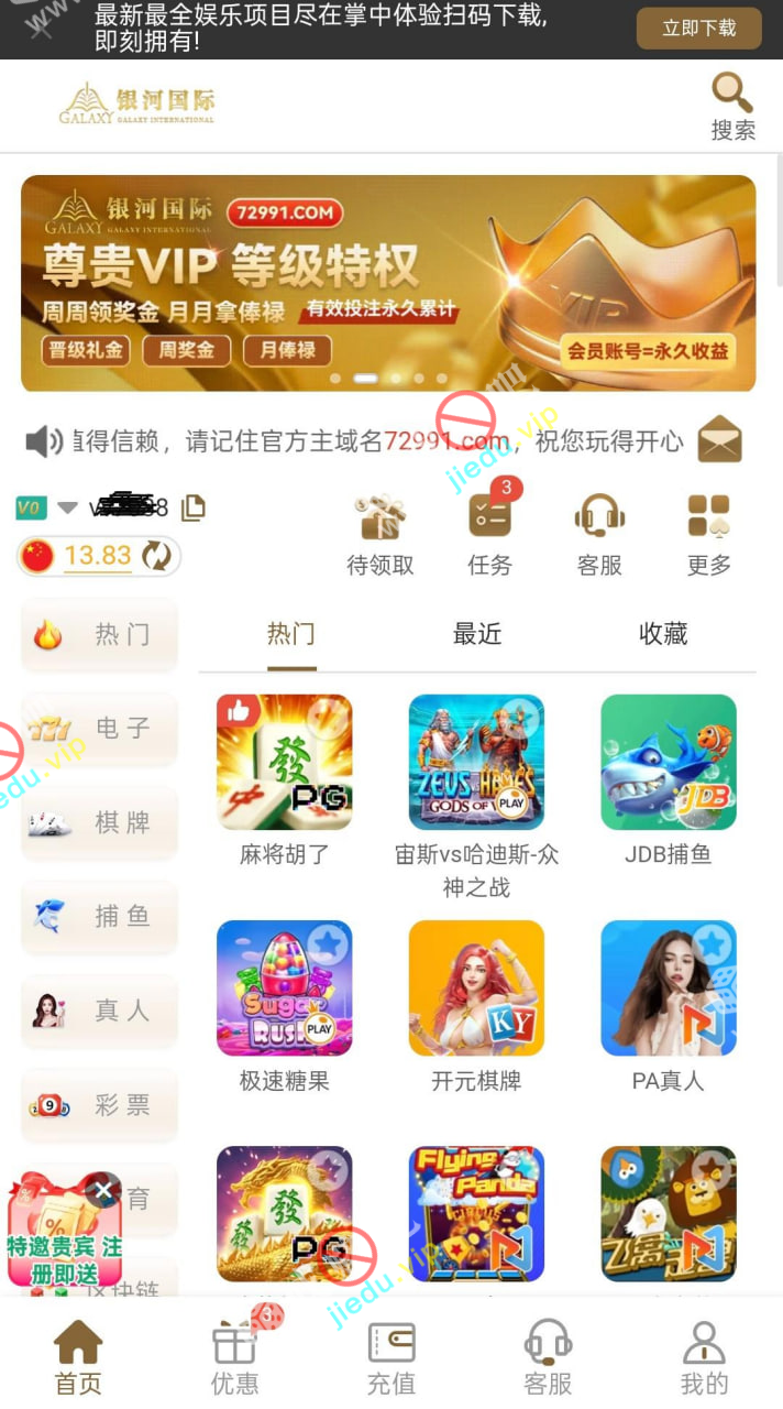 接到电话,银河注册自动送随机彩金!送了我13快多!
