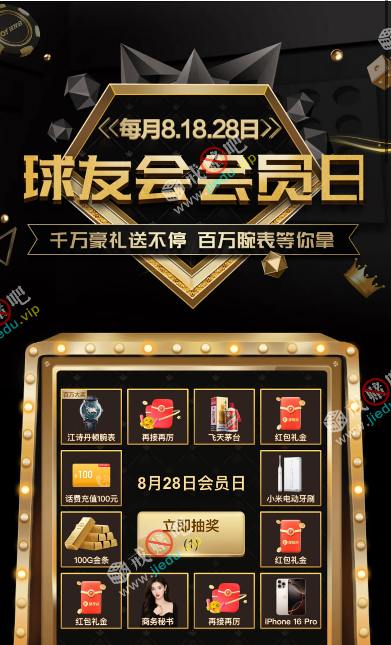 【球友会】—✅—28号会员日抽奖/逢八彩金