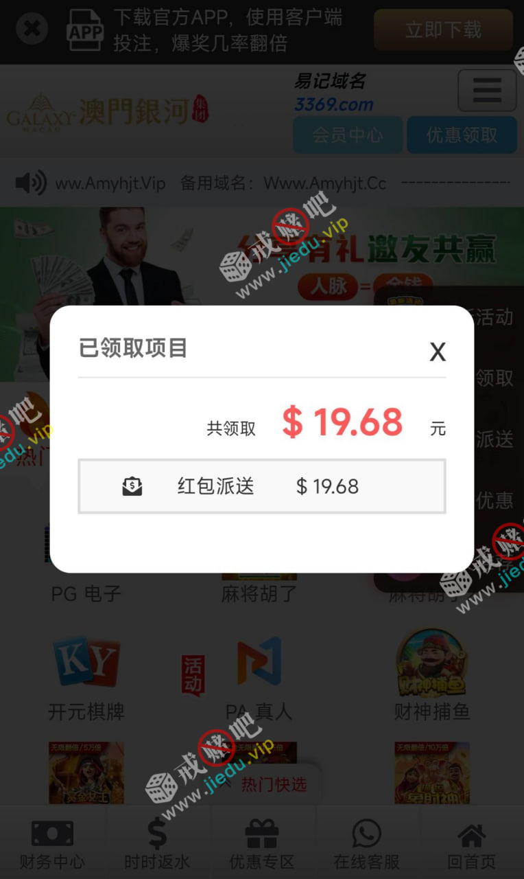 接到电话的哥们登录就弹出来的,金额是随机的,可以去试试。