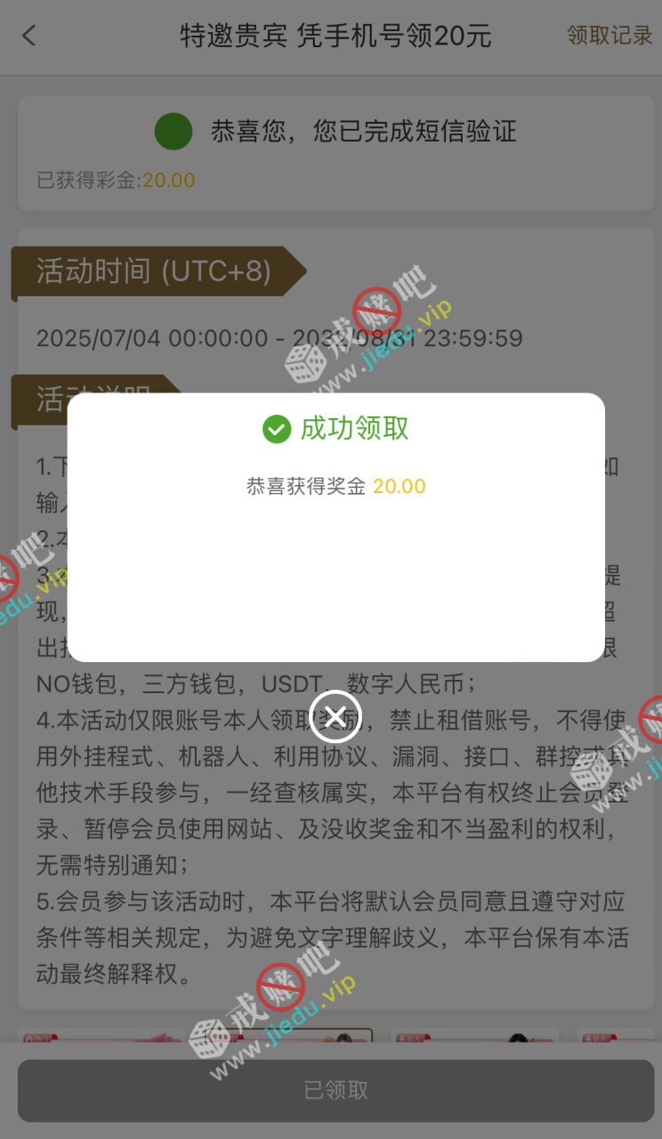 到账情况: 白嫖即可(勿充值)
