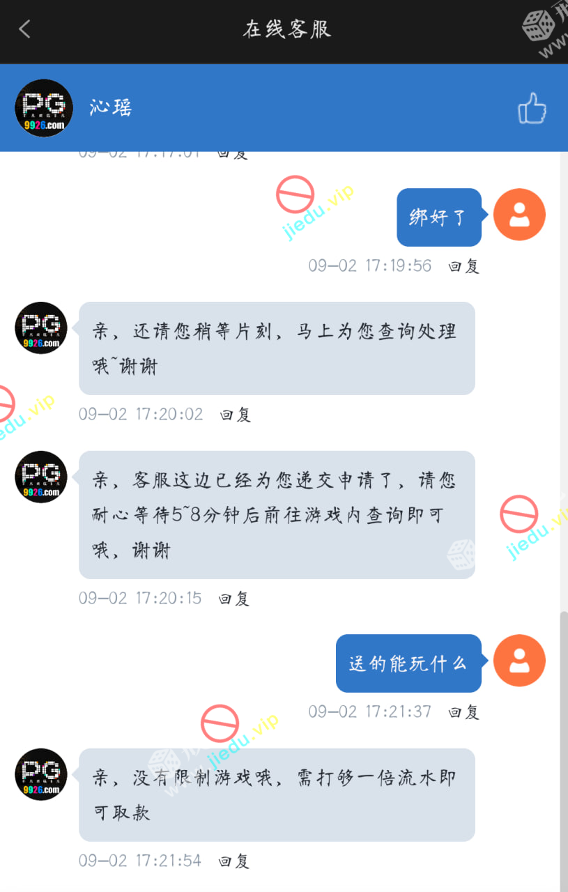 接到电话找客服,哥们可以去碰瓷试试,我都不记得我注册的时间,不限制游戏,一倍水。