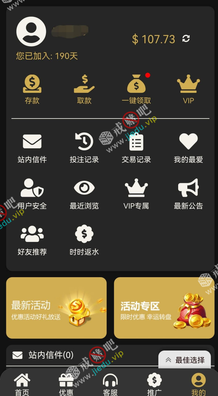 今天无聊随便登进去就看见有38彩金了,前几天充值过30块钱而已,哥们注册过的都可以去看看,老用户都登录去看看吧。