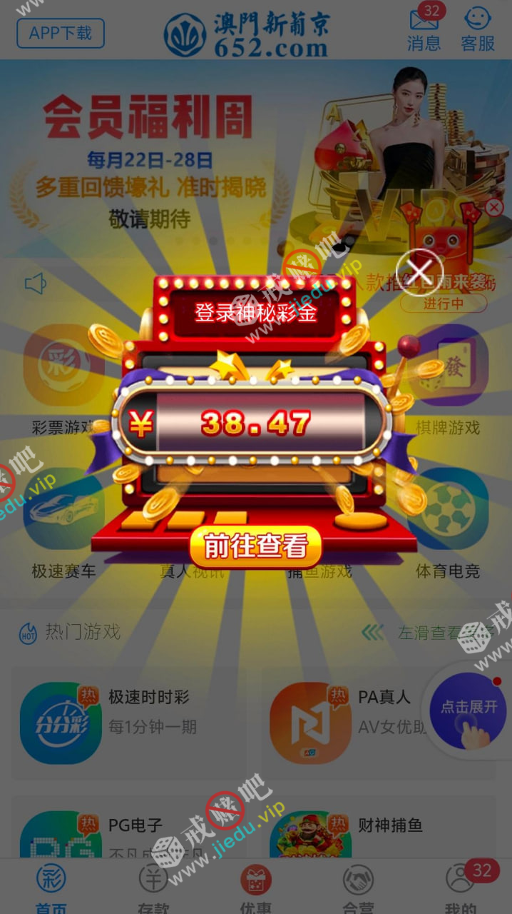 我这台不玩很久了,打电话来说登录就有神秘彩金,我一登录领到了 38,充值过的老用户去看看。