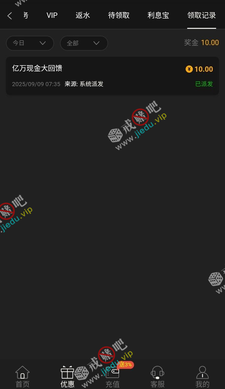 逢 9 回馈彩金,以前充过娱乐过的老玩家都可以去看看,领到的留图!我已经吃了 100,最底提 50!