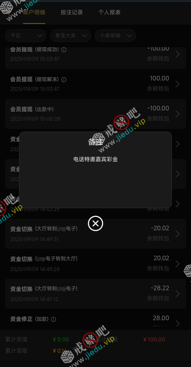 一毛没充值过,上个月领了28,刚接到电话找客服领了28,有就有没有无视禁止充值,只能打pg,100 提款。