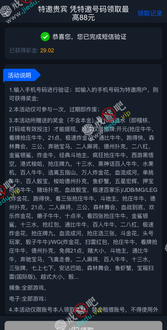 十倍流水出款,只能参与一次,领过的老哥们就不可以参与了,还没碰到的可以去碰了,我碰到了 29 块。
